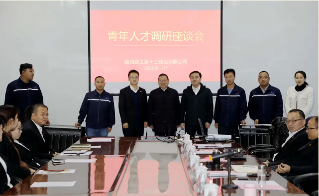 陜建十三建公司領(lǐng)導(dǎo)班子,各部室、各單位負責人,青年人才代表等40余人參加了座談。