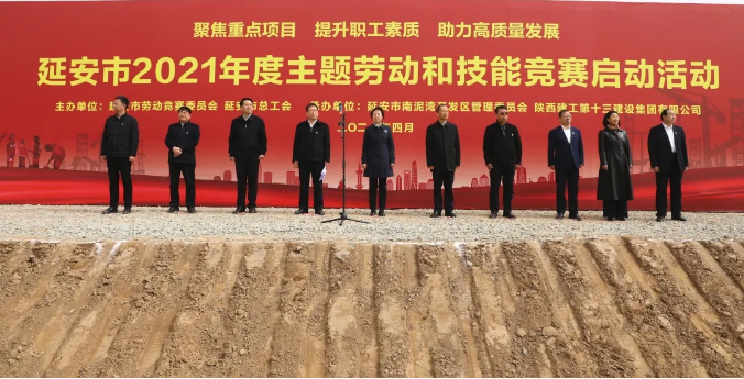 4月15日,延安市2021年度“聚焦重點(diǎn)項(xiàng)目 提升職工素質(zhì) 助力高質(zhì)量發(fā)展”主題勞動(dòng)和技能競賽在陜建十三建集團(tuán)承建的南泥灣金伯利農(nóng)場項(xiàng)目工地舉行。