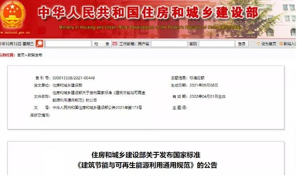 近日,住房和城鄉(xiāng)建設(shè)部發(fā)布國家標準《建筑節(jié)能與可再生能源利用通用規(guī)范》的公告。