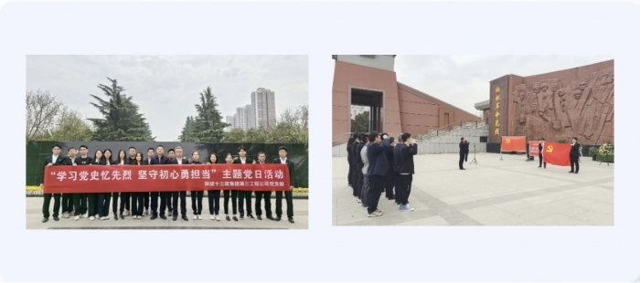 3月29日-4月3日,陜建十三建集團(tuán)各單位積極組織黨員干部職工開(kāi)展“學(xué)習(xí)黨史憶先烈·堅(jiān)守初心勇?lián)?dāng)”清明節(jié)主題黨日活動(dòng),旨在銘記歷史,緬懷先烈,激勵(lì)大家勇于擔(dān)當(dāng)、奮進(jìn)前行,助推企業(yè)高質(zhì)量發(fā)展!