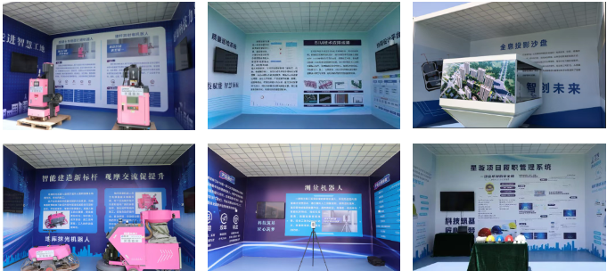 該項目緊扣智能化、數(shù)字化主題,以“設(shè)計數(shù)字化、施工智能化、管理信息化”為主線,分為“數(shù)字平臺區(qū)、智能機器人區(qū)、智能設(shè)備區(qū)、四新技術(shù)應用區(qū)、展板區(qū)”五大展區(qū),分別呈現(xiàn)了質(zhì)量巡檢系統(tǒng)、BIM技術(shù)過程管理、基坑監(jiān)測系統(tǒng)、地面整平機器人、地庫抹光機器人、螺桿洞封堵機器人、混凝土內(nèi)墻面打磨機器人、建筑清掃機器人、地坪研磨機器人、ALC墻板安裝機器人等,展示了一系列施工相關(guān)的智能建造技術(shù)和智能設(shè)備,讓觀摩人員贊嘆不已、紛紛點贊。